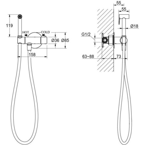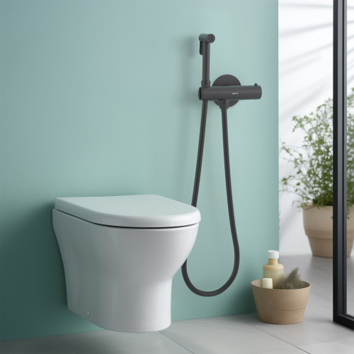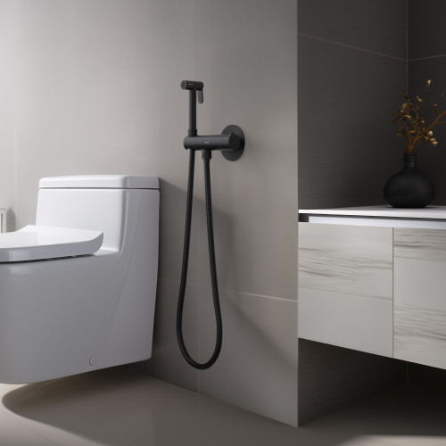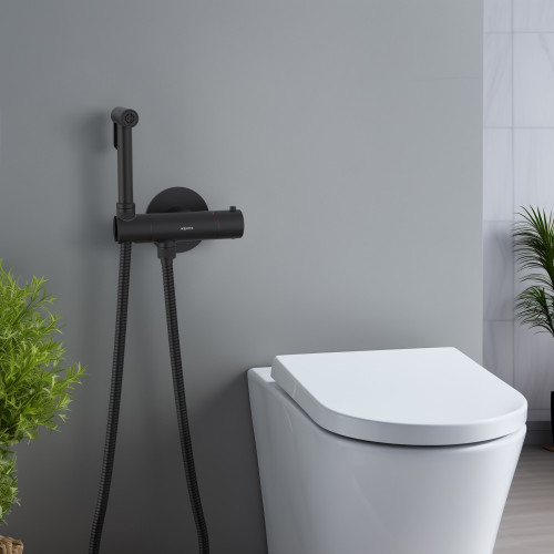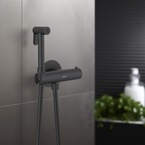 AQ1027MB ОБЕРОН комплект для гигиенического душа термостатический встроенный (смеситель + гигиеническая лейка + шланг), матовый черный AQ1027MB