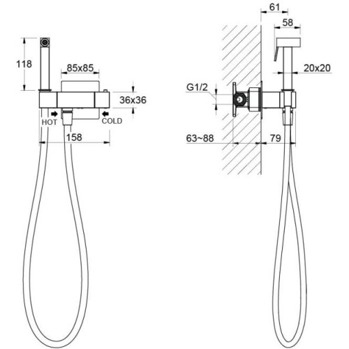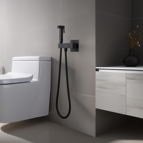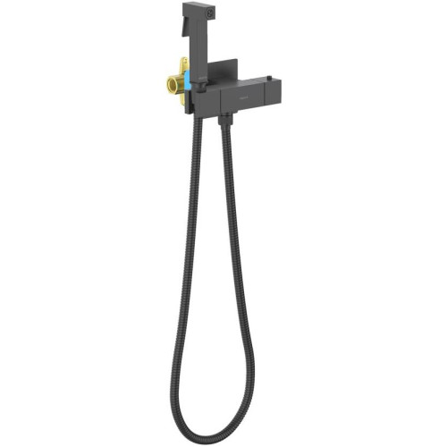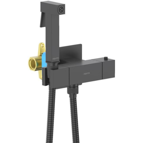 AQ1028MB ЛИБРА комплект для гигиенического душа термостатический встроенный (смеситель + гигиеническая лейка + шланг), матовый черный AQ1028MB