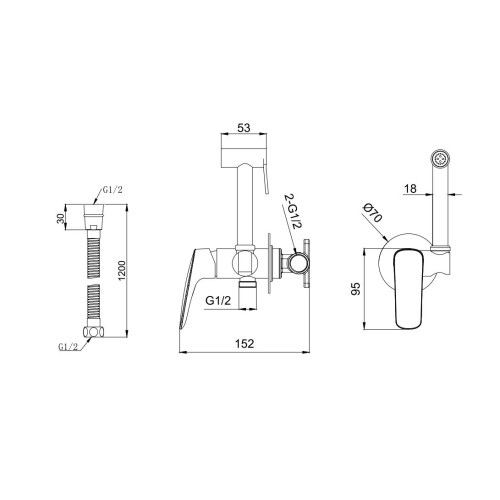AQ1019MB ВЕГА комплект для гигиенического душа встроенный (смеситель + гигиеническая лейка + шланг), матовый черный AQ1019MB