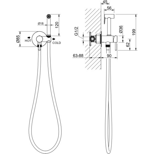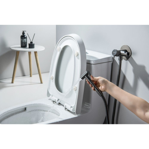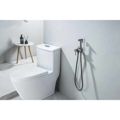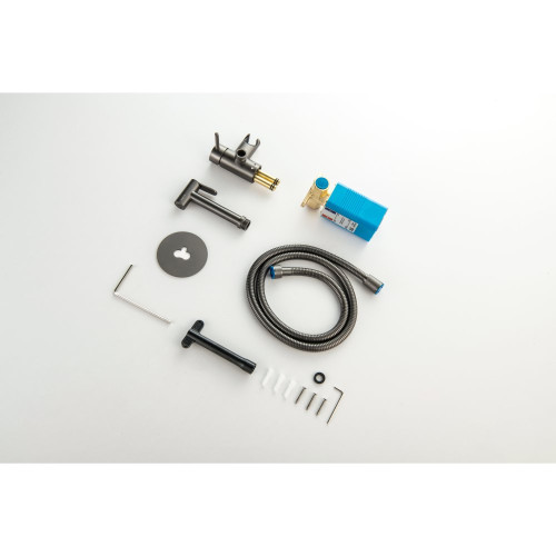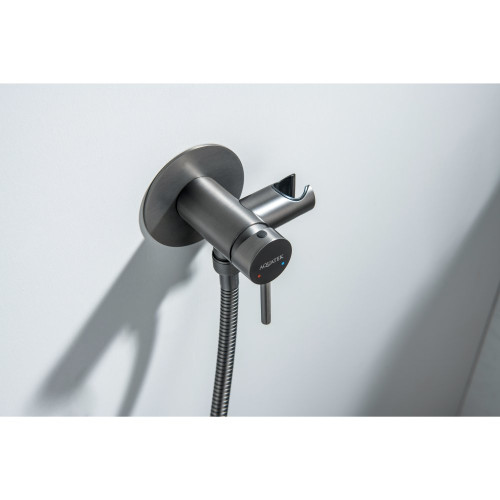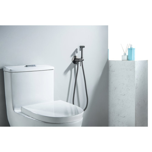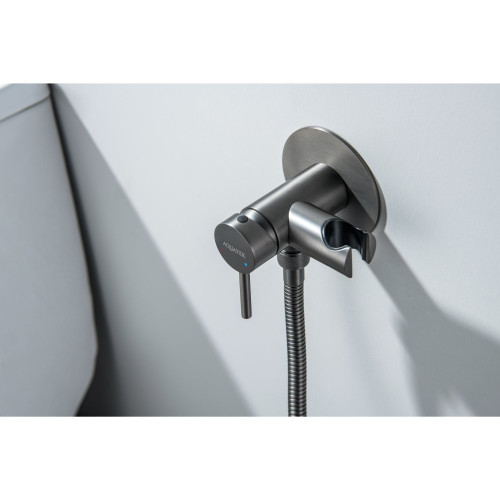 AQ1021BGM ЕВРОПА комплект для гигиенического душа встроенный (смеситель + гигиеническая лейка + шланг), оружейная сталь (шлиф. черный хром) AQ1021BGM