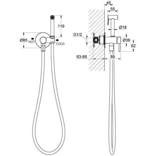 AQ1021CR ЕВРОПА комплект для гигиенического душа встроенный (смеситель + гигиеническая лейка + шланг) AQ1021CR