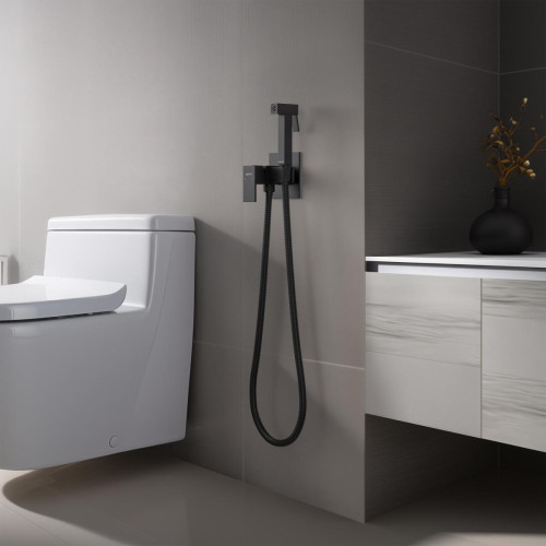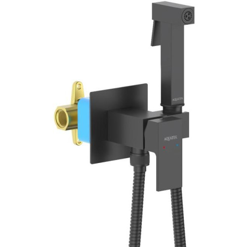 AQ1022MB ЛИБРА комплект для гигиенического душа встроенный (смеситель + гигиеническая лейка + шланг), матовый черный AQ1022MB