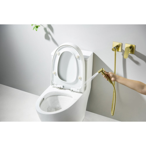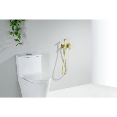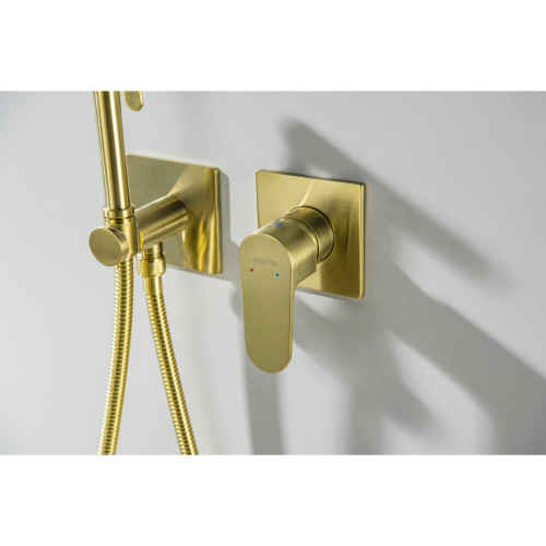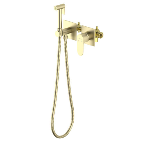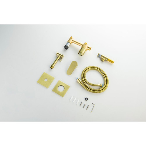 AQ1220BG ОБЕРОН комплект для гигиенического душа встроенный 2 отв. (смеситель + гигиеническая лейка + шланг), шлиф. золото AQ1220BG