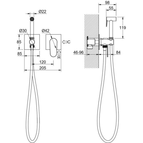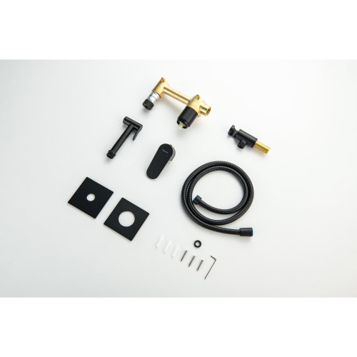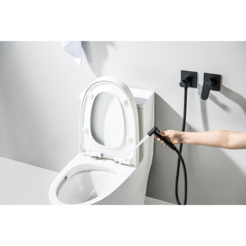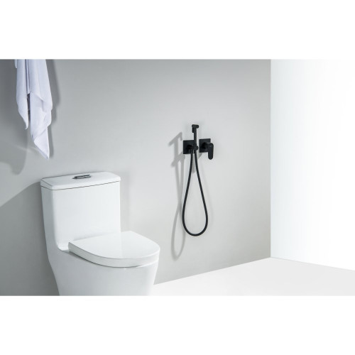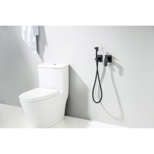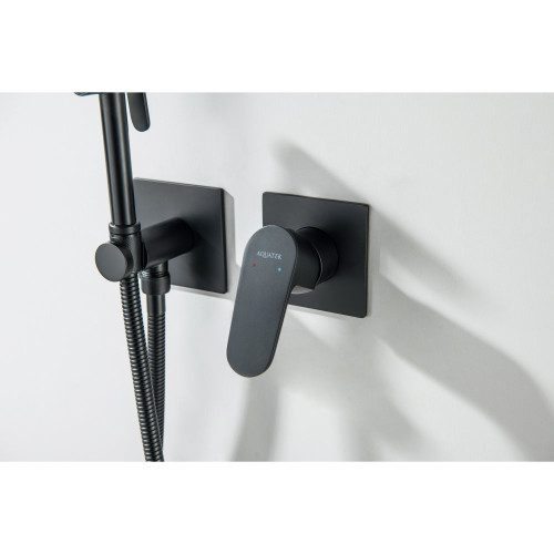 AQ1220MB ОБЕРОН комплект для гигиенического душа встроенный 2 отв. (смеситель + гигиеническая лейка + шланг), матовый черный AQ1220MB