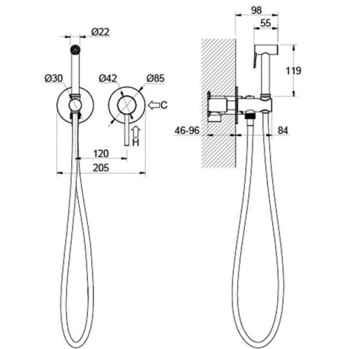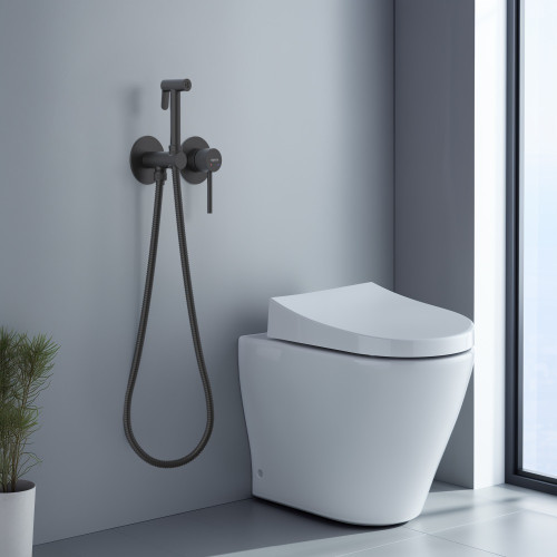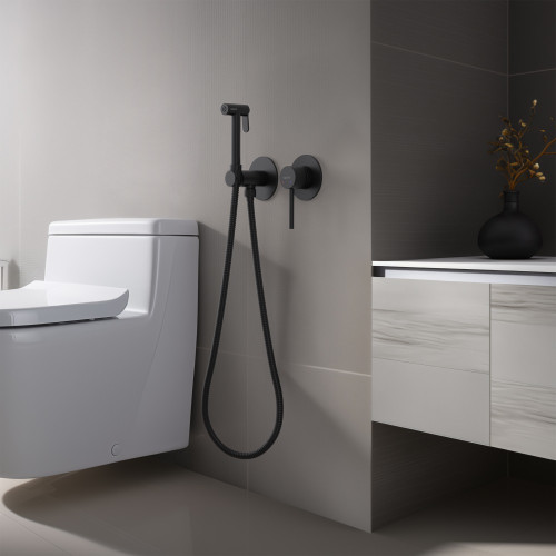 AQ1319MB ЕВРОПА комплект для гигиенического душа встроенный 2 отв. (смеситель + гигиеническая лейка + шланг), матовый черный AQ1319MB