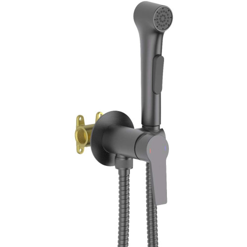 AQ1719BGM ЛУГАНО комплект для гигиенического душа встроенный (смеситель + гигиеническая лейка + шланг), оружейная сталь AQ1719BGM