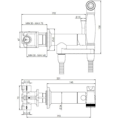 AV00610CR Комплект для гигиенического душа встроенный (смеситель + гигиеническая лейка + шланг) AV00610CR