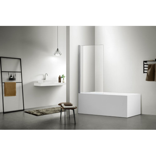 AQ DEL SBA 08015CH Шторка на ванну, одноэлементная, поворотная 800X1500 профиль хром, стекло прозрачное AQ DEL SBA 08015CH