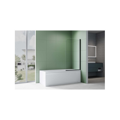 AQ.BSRC.080.1BL Шторка на ванну, одноэлементная, поворотная 800X1500 профиль черный, стекло прозрачное 6мм, угол круглый AQ.BSRC.080.1BL