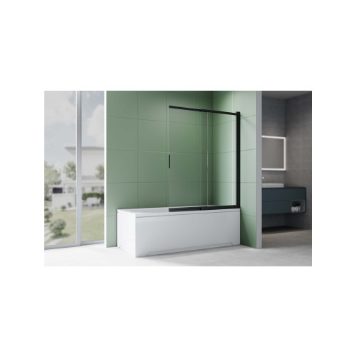 AQ.BSS.100.1BL Шторка на ванну, одноэлементная, поворотная 1000X1500 профиль черный, стекло прозрачное 5мм AQ.BSS.100.1BL