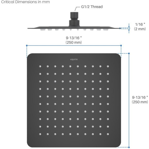 AQ2072MB квадратный верхний душ 2502502 мм, матовый черный AQ2072MB