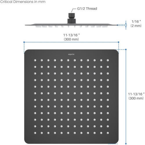 AQ2074MB квадратный верхний душ 3003002 мм, матовый черный AQ2074MB