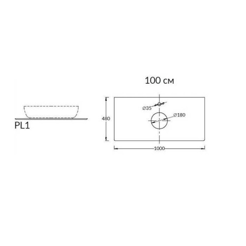 Kerama Marazzi Столешница из керамогранита для накладных раковин Фондамента 100см, с 1 отв., цвет: серый натуральный