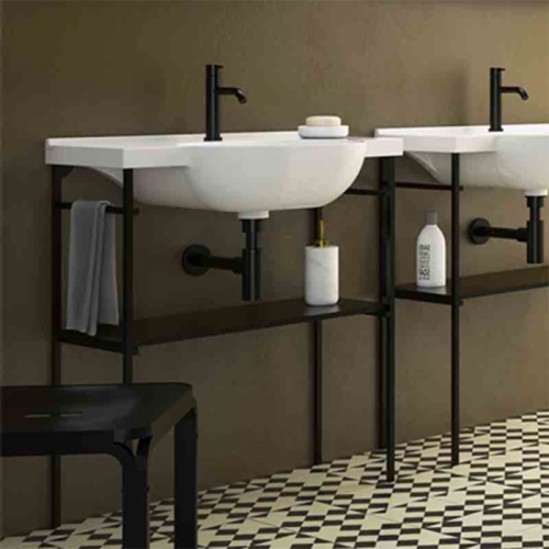 Globo Mode Консоль металлическая напольная 76.7x31.5xh85.5 см, для раковины ME080, цвет: черный матовый. ME004SAR