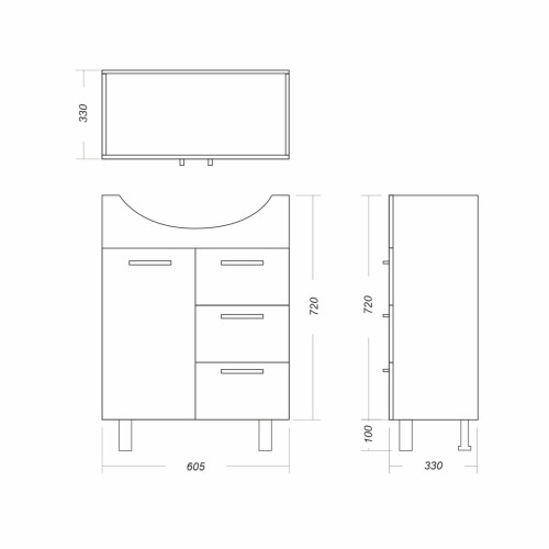 ЛАГУНА/3 Тумба напольная 605х720х320 бел. (подходит умывальник мебельный Лагуна 65) TLGN65