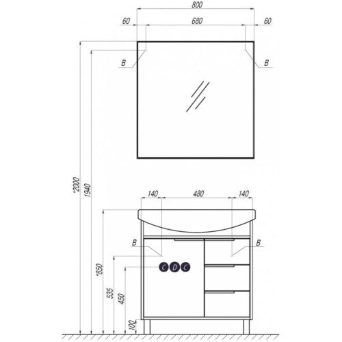 1A216502RI010 Зеркало Рико 80 1A216502RI010
