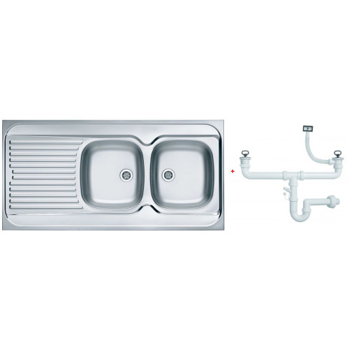 Alv 1009085 Classic 100 Мойка накл. правая, 0,6 мм, NAT-1½ 1200х600х160 мм, 2 чаши, крыло, шк 1200 1009085