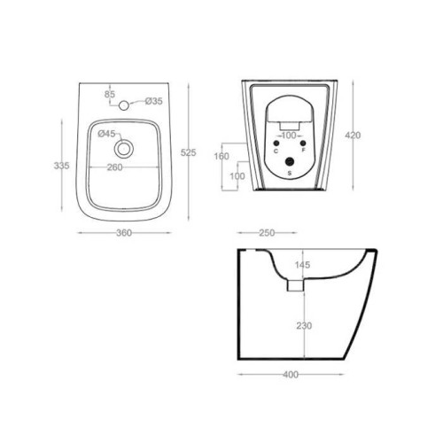 Artceram A16 Биде напольное 36х52см., 1 отв., цвет: notte. ASB002 36 00