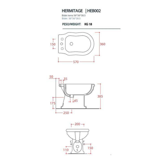 Artceram HERMITAGE биде напольное 55х36см с 1 отв под смеситель с креплением, цвет: белый. HEB002 01 00*1
