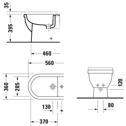 Duravit Starck 3 Биде напольное приставное 56х36см., с 1 отв. под смеситель, цвет: белый. 2230100000