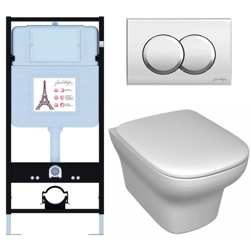E21747RU-CP Унитаз c инсталляцией Jacob Delafon Vox, сиденье тонкое микролифт, панель для двойного смыва, хром (E36495-NF+E36496-CP+EDM102+E20142) E21747RU-CP