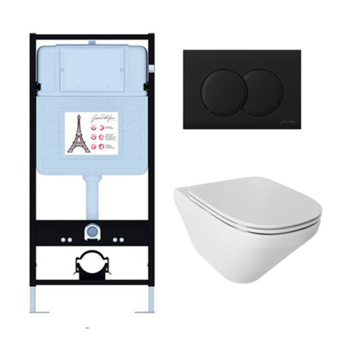 E21775RU-BL Унитаз c инсталляцией Modern Life, сиденье тонкое микролифт, панель для двойного смыва, матовый черный (E36495-NF+E36496-BL+E77725+E77168) E21775RU-BL