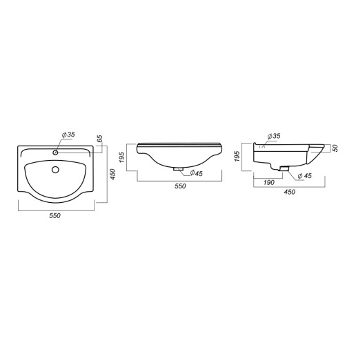 РЕАЛ 56 Умывальник (WB.FN/Real/56-C/WHT.G/S1) WB.FN/Real/56-C/WHT.G/S1