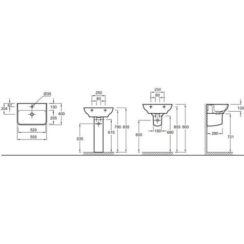 STRUKTURA EGE112-00 Раковина 55x40 с отв.для смесителя,сл.пер.,белый EGE112-00