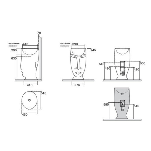 Kerasan Artwork Раковина 45х51х h94.5см., свободностоящая MOLOCO, с отверстием для слива в пол, цвет: белый матовый. 474030, 756830