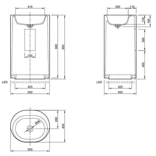 Knife Moon Раковина 55х45хh90см, напольная, с подсветкой, c выпуском белым и сифоном, слив в стену, цвет: белый матовый. 0600-031-01WA