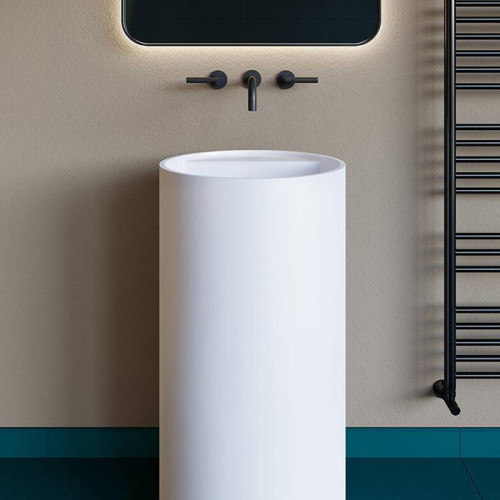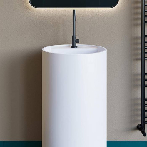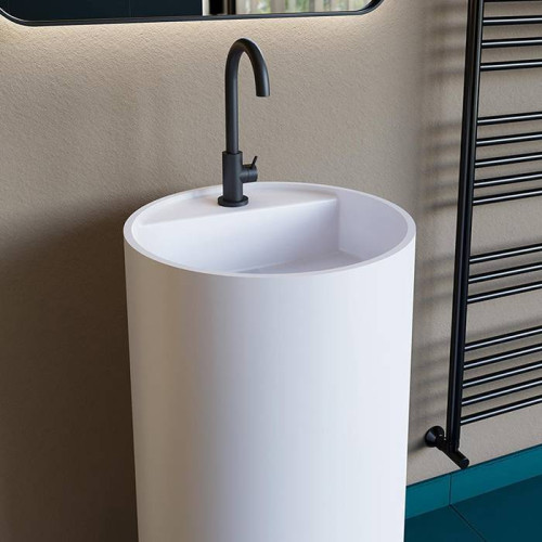 Salini Armonia Раковина напольная слив в пол 47х47х87cм, без отв. под смеситель, донный клапан UpDown, сифон, S-Sense, цвет: белый глянцевый. 130114G/слив в пол