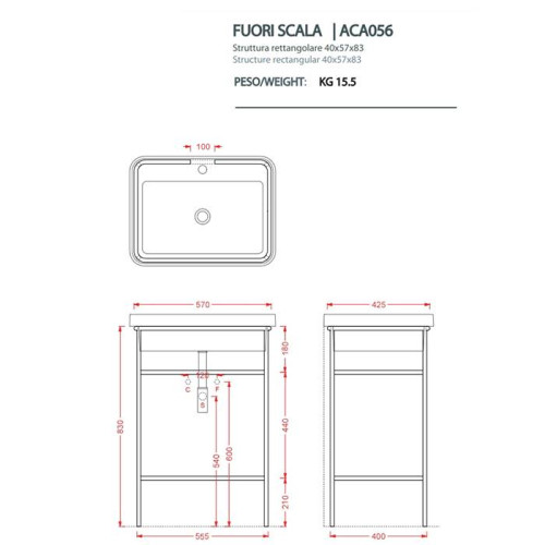 Artceram FUORI SCALA Металическая структура 40x57хh83см с раковиной на 1 отв. напольная, цвет белый, структура цвет: черный матовый. ACA056 17, TFL034 01 00
