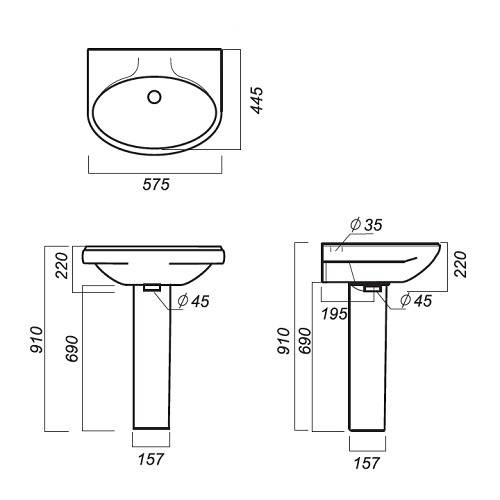 САМАРСКИЙ Умывальник (WB.PD/Samarsky/57-C/WHT.G/S1) WB.PD/Samarsky/57-C/WHT.G/S1