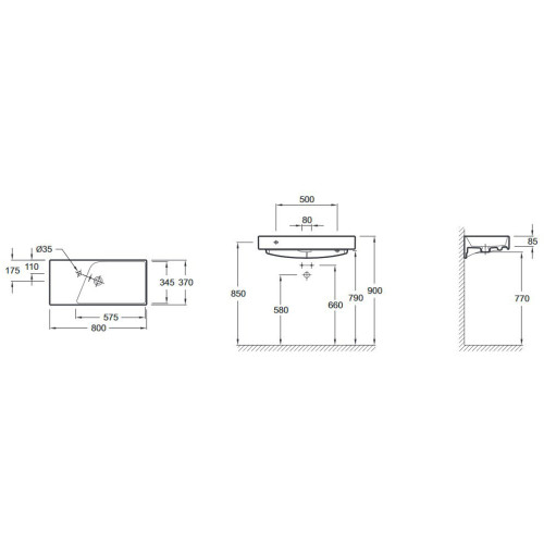 RYTHMIK EXP112-Z-00 Подвесная раковина-столешница гладкая нижняя поверхность, Ш80Г37 см. Одно отверстие для смесителя. Может устанавливаться на мебе EXP112-Z-00