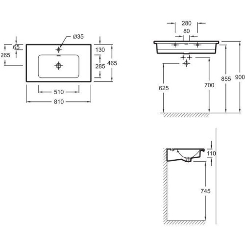 Vox EXAE112-00 Подвесная раковина-столешница 80 х 46 см, Для самостоятельной установки EXAE112-00