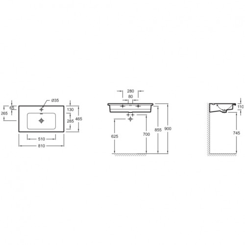Vox EXAE112-Z-00 Подвесная раковина-столешница с гладкой нижней поверхностью 80 х 46 см, Для установки на мебель EXAE112-Z-00