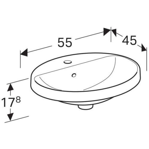 500.720.01.2 Geberit VariForm Раковина встраиваемая в столешницу овальной формы, 55х45 см, с отв. под смеситель, с отв. перелива 500.720.01.2