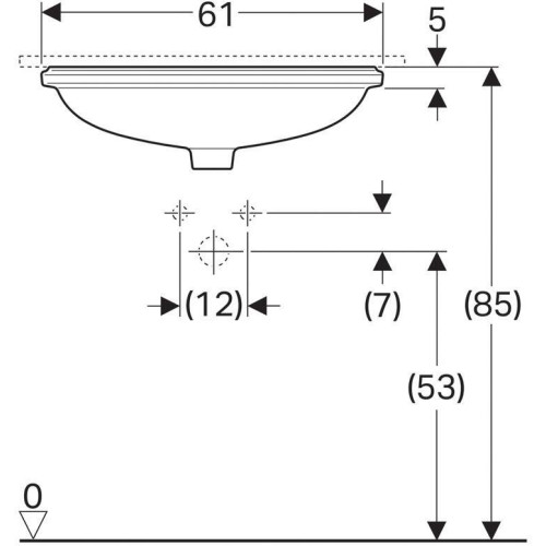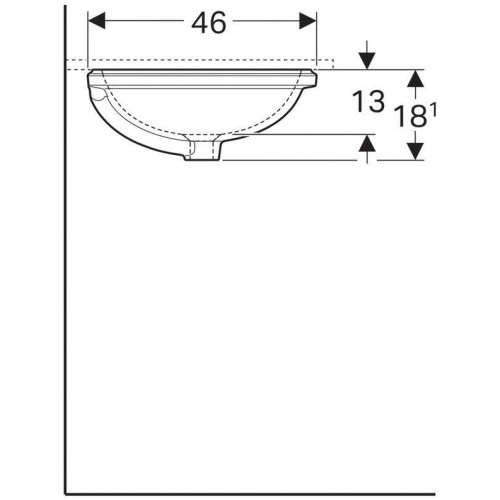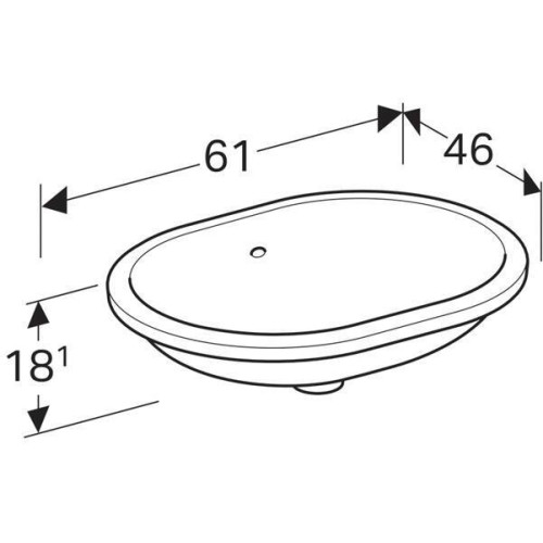 500.756.01.2 Geberit VariForm Раковина с установкой под столешницу эллиптичекой формы, T1=55х40 см, без отв. под смеситель, с отв. перелива 500.756.01.2