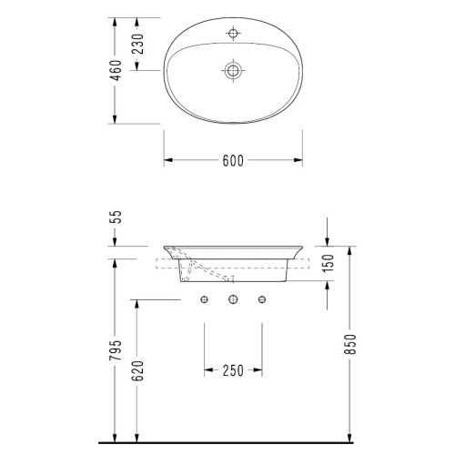 HR34TXS110H HERA овальная раковина для установки в столешницу 46х60 см, с отверстием под смеситель, Serel HR34TXS110H