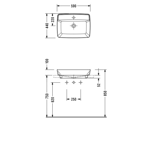 RT30TXS110H RITA прямоугольная раковина для установки в столешницу 44х59 см, с отверстием под смеситель, Serel RT30TXS110H