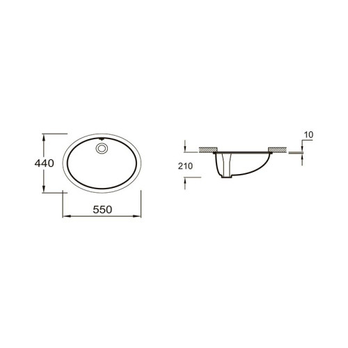 E2211-0 Caxton раковина встраиваемая снизу 55x44 cm, белая с отв перелива E2211-0