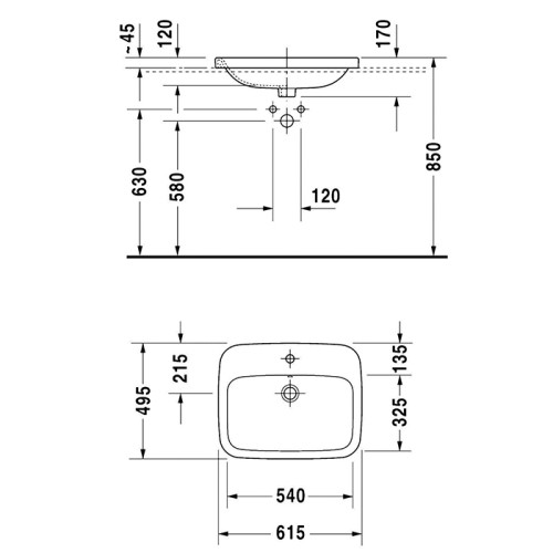 Duravit DuraStyle Раковина подвесная, 61х49см., с 1 отв., встраиваемая сверху, цвет: белый. 374620000