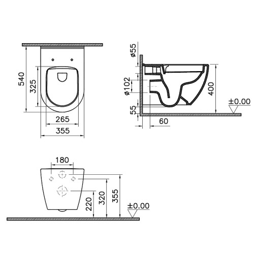 7510B003-0075 Подвесной Безободковый унитаз VitrA Mia Round (НУЖНА КРЫШКА 110-003-019 801-003-019) 7510B003-0075