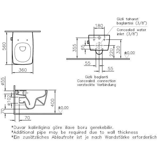 7672B083-0101 Metropole безободковый подвесной унитаз, цвет матовый чёрный (НУЖНА КРЫШКА 122-083-009) 7672B083-0101