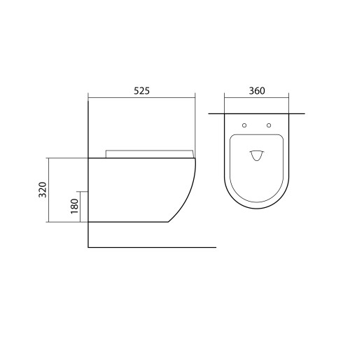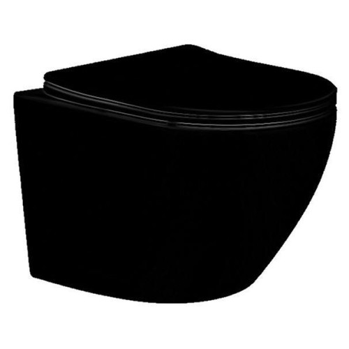 AQ1901-MB ЕВРОПА Унитаз подвесной безободковый 525360320мм, тонкое сиденье с механизмом плавного закрывания, крепеж, цвет матовый черный AQ1901-MB