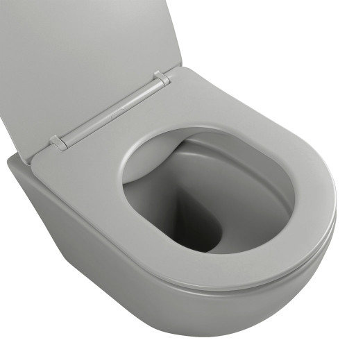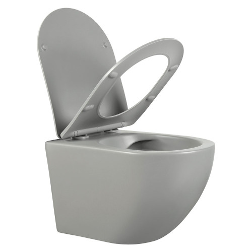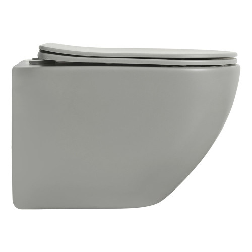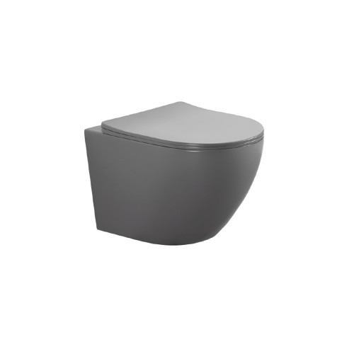 AQ1901-MG ЕВРОПА Унитаз подвесной безободковый 525360320мм, тонкое сиденье с механизмом плавного закрывания, крепеж, цвет матовый серый AQ1901-MG