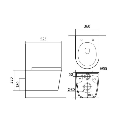 AQ1905-00 ВЕГА Унитаз подвесной безободковый 525360320мм, тонкое сиденье с механизмом плавного закрывания, крепеж AQ1905-00