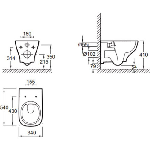 EDE102-00 Struktura чаша подвесного унитаза без обода 5434 см, белый EDE102-00