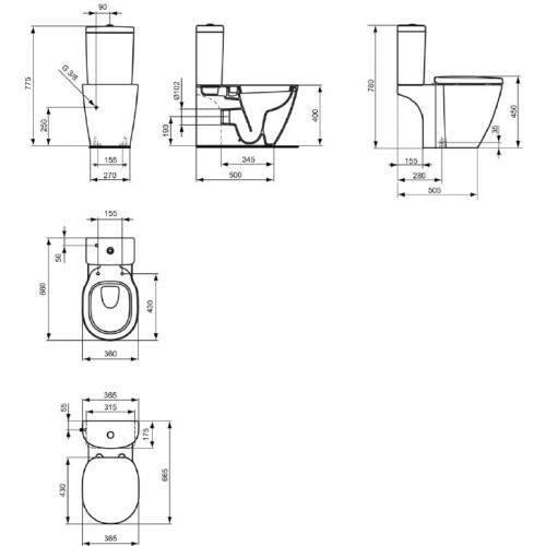 E803601 Connect Унитаз напольный для монтажа с бачком, горизонтальный выпуск. E803601
