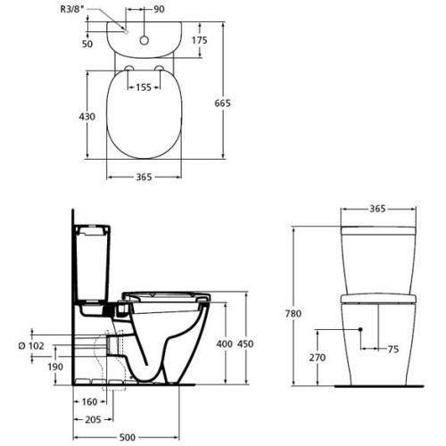 E803701 Connect Cube Унитаз напольный пристенный для монтажа с бачком горизонтальный выпуск. E803701